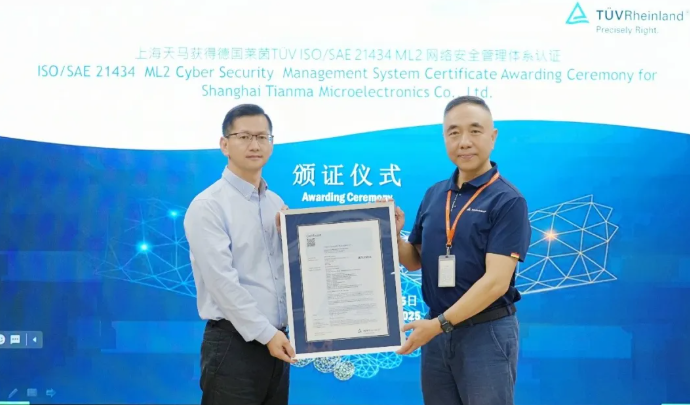 近日,國際知名獨立第三方檢測、檢驗和認證機構德國萊茵TüV集團(以下簡稱“TüV萊茵”)向天馬微電子股份有限公司(以下簡稱“天馬”)頒發(fā)了ISO/SAE 21434網絡安全管理體系認證證書。這標志著天馬
